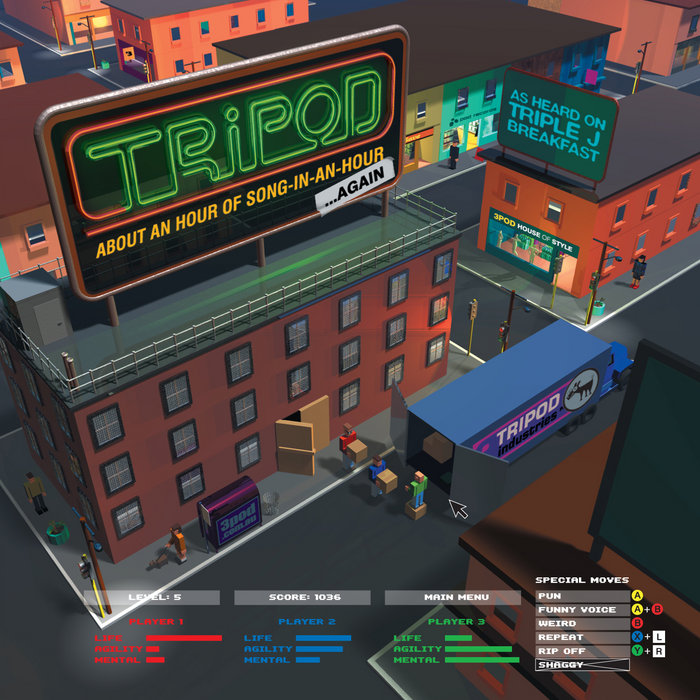 About An Hour Of Song-In-An-Hour Again! by Tripod, released 27 October 2003 1. Intro - Science Fact Are Useful 2. Crowe's Lullaby 3. Saniglove 4. Shadow of Space 5. Surfers Paradise the Musical 6. Boggyman 7. Josephine 8. The Jizmo Show 9. Star Big Kev Wars 10. Love Scod and Gatesy 11. Sniff and Stiff 12. Transformer Topics 13. When You're A Transformer 14. Kevin Bacon 15. Here's Wally 16. Hidden Track 1 17. Hidden Track 2 This is the second Song-In-An-Hour album by Tripod.