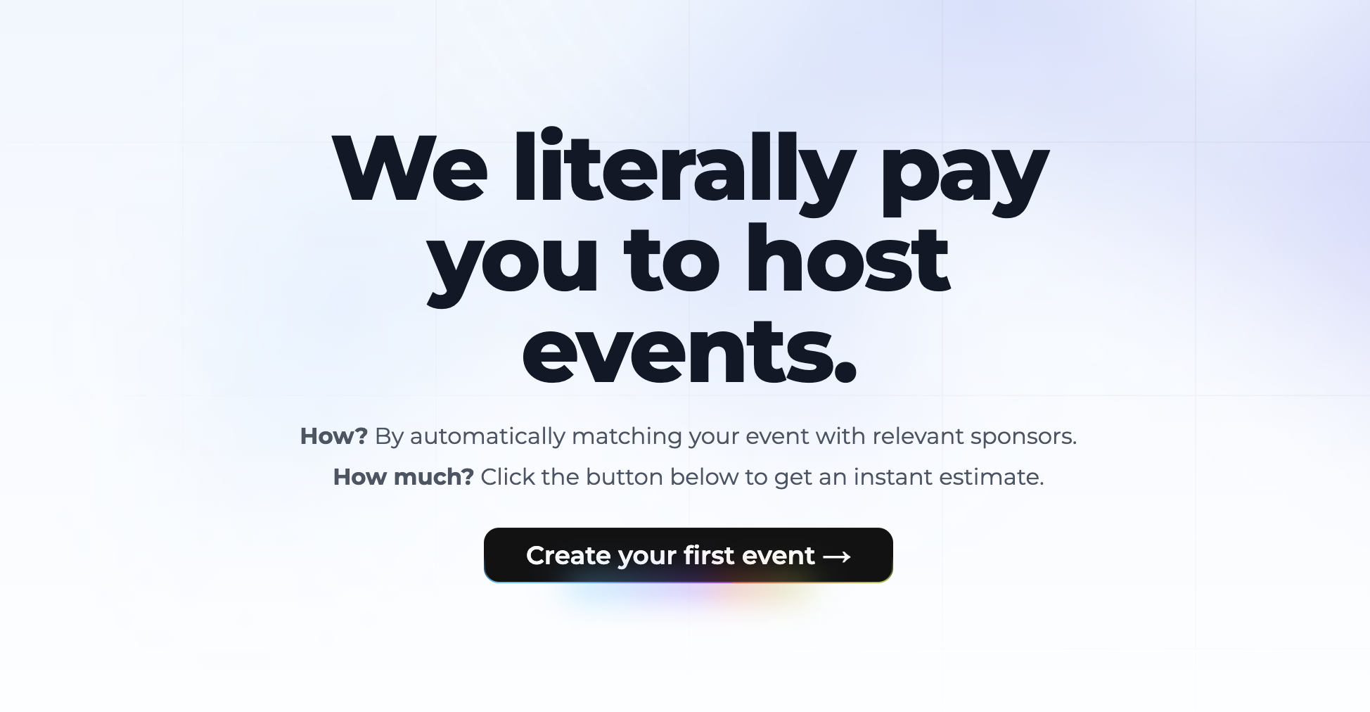 We literally pay you to host events. How? By automatically matching your event with relevant sponsors. How much? Click to get an instant estimate.