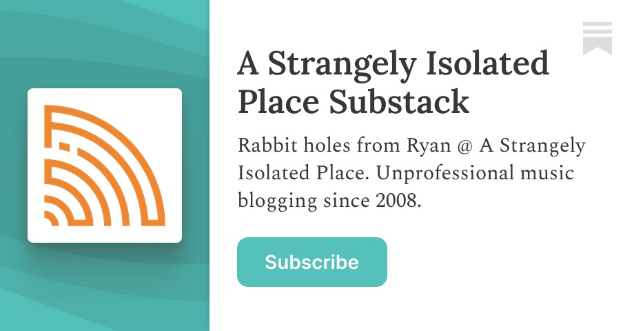 Rabbit holes from Ryan @ A Strangely Isolated Place. Unprofessional music blogging since 2008. Click to read A Strangely Isolated Place Substack, by ASIP, a Substack publication with hundreds of subscribers.