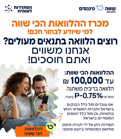 - descriptionהלוואה בתנאים מעולים! למי שיודע לבחור חכם