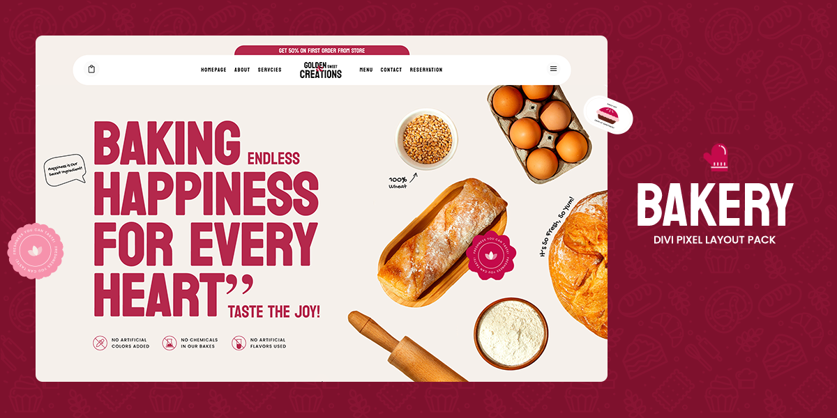 - descriptionDownload a FREE Divi Pixel Bakery Layout Pack with 13 beautifully designed, mobile-optimized pages. Perfect for bakery websites to stand out online!