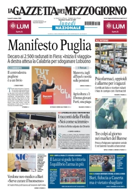 - https://edicola.lagazzettadelmezzogiorno.it/gazzettadelmezzogiorno/pageflip/swipe/barl/20251006barl