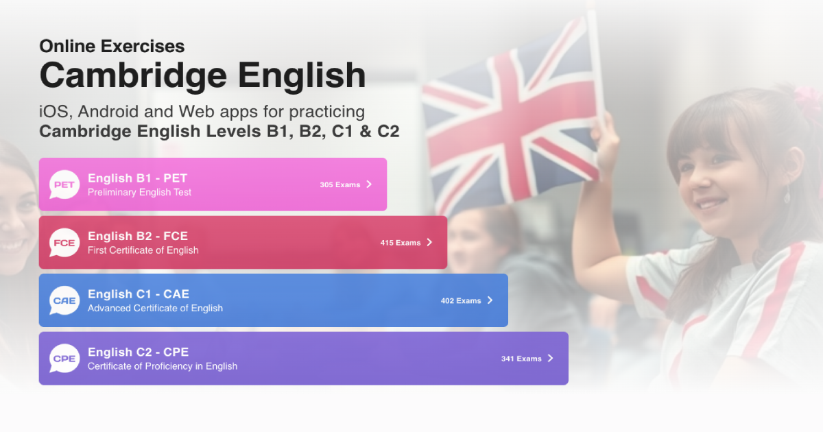 - og:descriptionGet ready for your Cambridge English exams with the ultimate learning apps. Practice grammar, vocabulary, phrasal verbs, and exam-style questions for B1, B2, C1 & C2 levels.