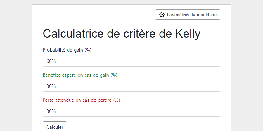 Calculatrice de critère de Kelly - Fical.net