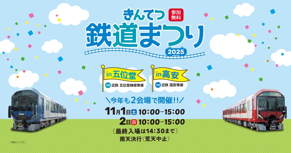 - descriptionきんてつ鉄道まつり2025 in 五位堂・高安。今年は2会場で開催します!ビンゴ大会、鉄道模型走行会などたくさんのイベントを実施します。