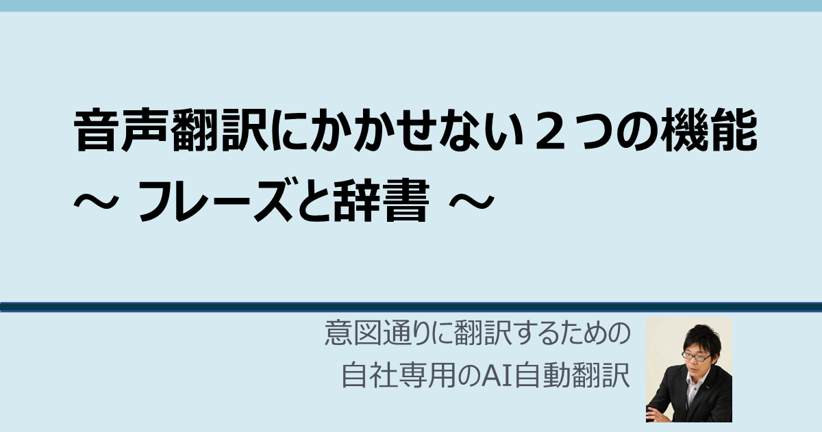 - og:title音声翻訳にかかせない2つの機能 – フレーズと辞書 | 意図通りに翻訳するための自社専用のAI自動翻訳