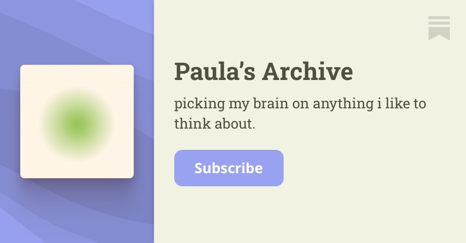 picking my brain on anything i like to think about. Click to read Paula’s Archive, by Paula Macena, a Substack publication with hundreds of subscribers.