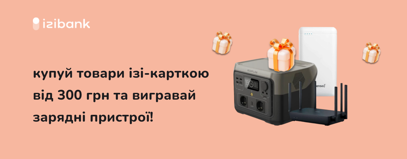 купуй товари ізі-карткою від 300 грн та вигравай ecoflow, powerbank, wi-fi роутер!