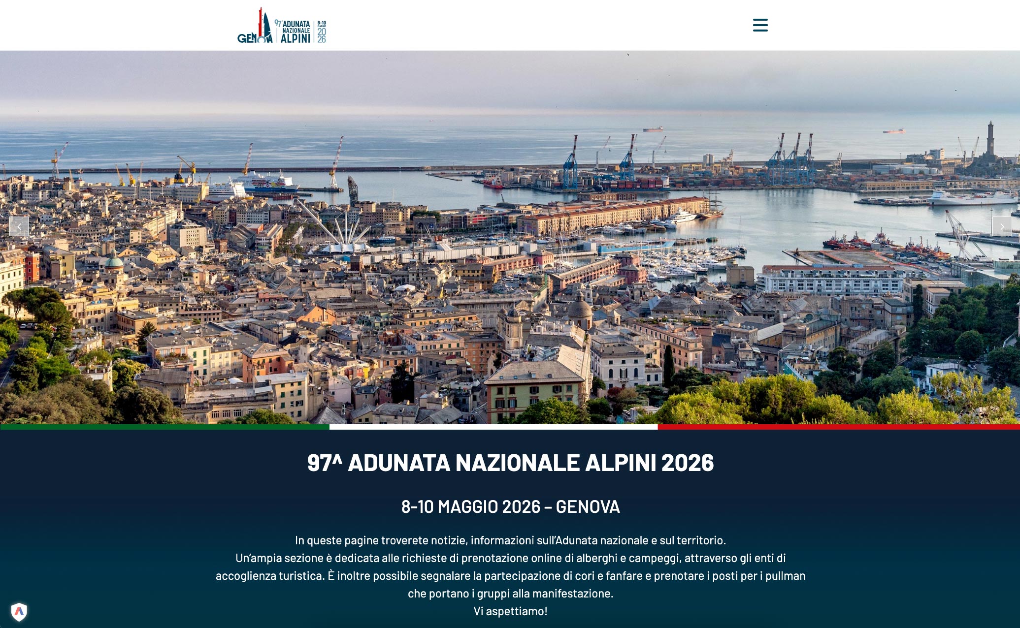 97ª Adunata Nazionale Alpini 2026 | Genova - Prenota online la piazzola per camper e tende, partecipa ai cori e fanfare. Vi aspettiamo!