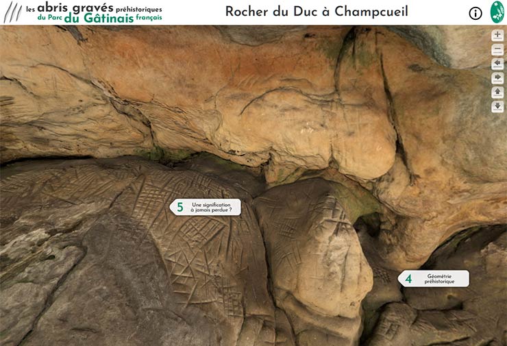3- namePNRGF - Visite virtuelle de l'abri gravé du Rocher du Duc à Champcueil