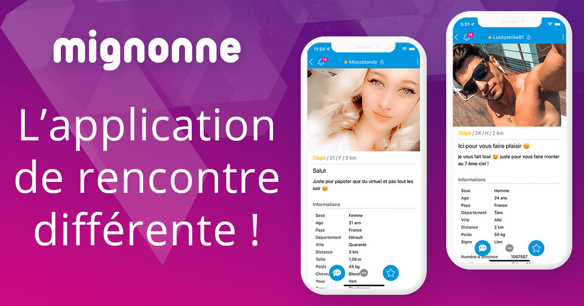 Mignonne est l'appli de référence pour des rencontres libres et fun entre adultes. Trouvez facilement un plan d'un soir ou plus en toute discrétion