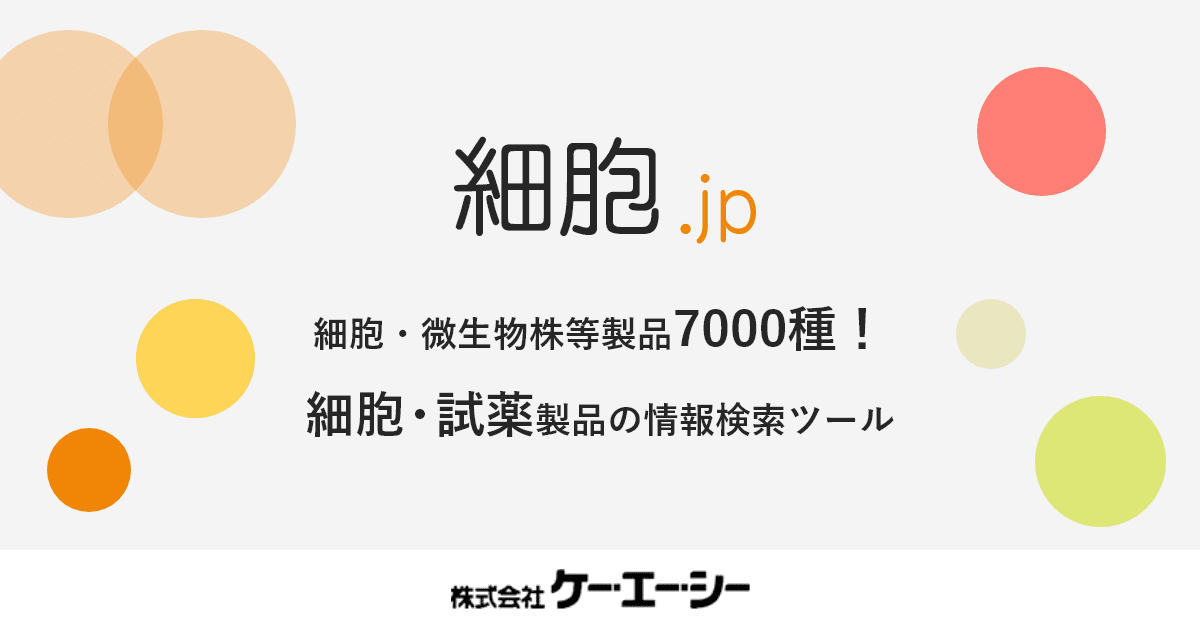 - og:description「細胞.jp」は細胞・培地・血清など細胞関連情報を充実させた、ケー・エー・シーが運営するウェブサイトです。簡単で便利な細胞検索機能でお探しの細胞がきっと見つかります。